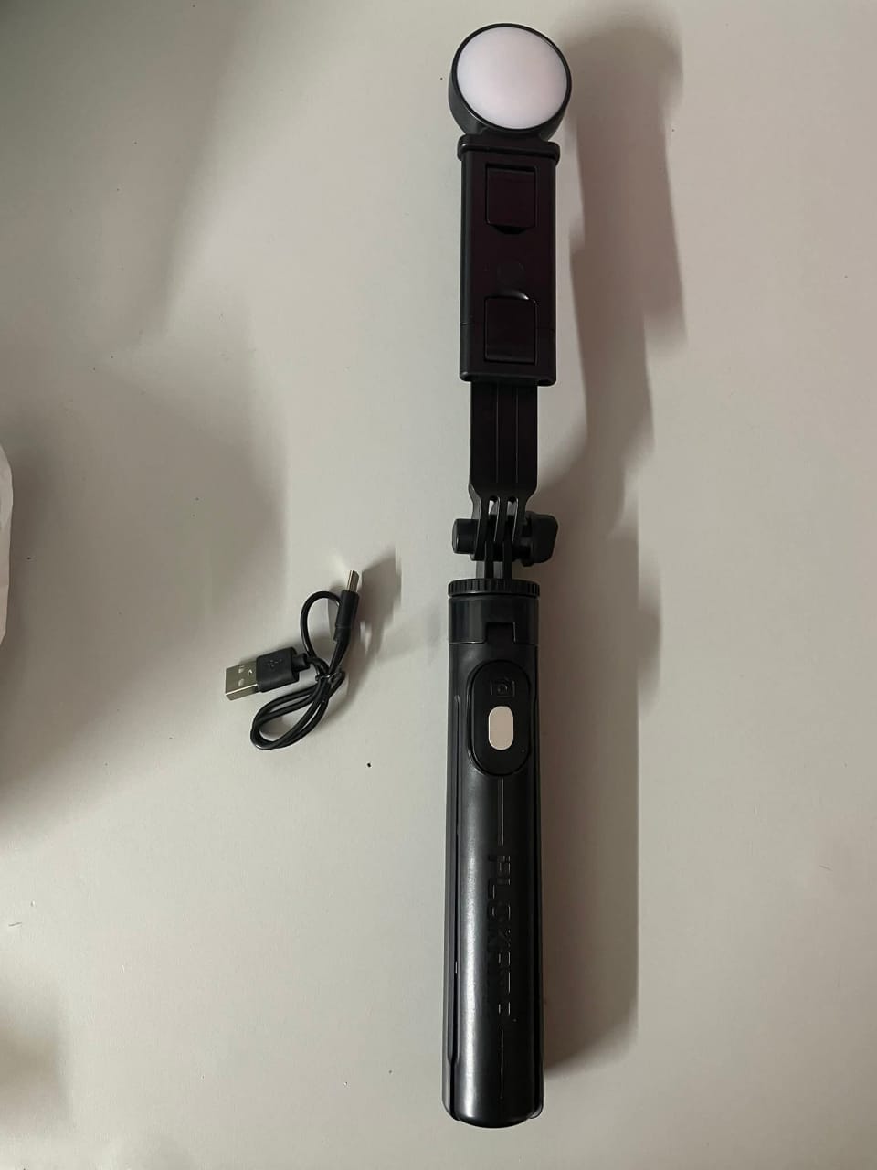 Combines a selfie stick, tripod, rotating phone holder, and LED fill light — perfect for vlogging, filming, and streaming.